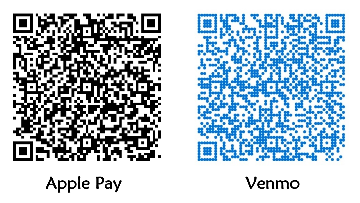 Click DONATE NOW button above to use a credit/debit card, Google Pay, and PayPal…or use the QR codes below for Apple Pay and Venmo.